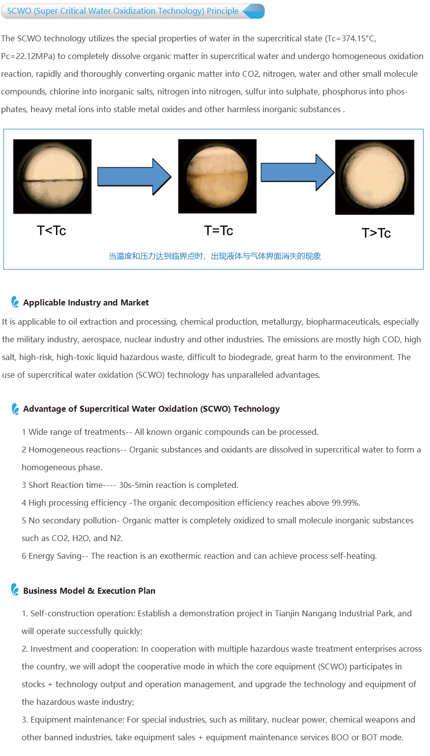 Tianjin DXC Environmental Technology Co., Ltd. is focused on chemical industrial wastewater management systems and zero-emissions technology, and is dedicated to solving difficult-to-degrade industrial wastewater, high-risk (teratogenic, carcinogenic, mutagenic) industrial waste fluids, sludge hazardous waste, etc and providing comprehensive solutions for wastewater zero discharge for petrochemicals, pharmaceuticals, dye intermediates, and nuclear industries to achieve zero environmental pollution. The new technologies that have been applied are SCWO (Supercritical Water Oxidation) technology, Super Membrane Technology, and MVR Evaporation Technology. The company has established the “Academician Expert Workstation” and cooperated with international leading technology companies to apply SCWO technology to the zero discharge of hazardous waste for the first time in China. It has applied for 8 SCWO technical patents at home and abroad.