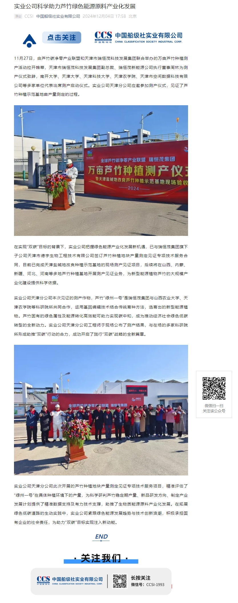 实业公司科学助力芦竹绿色能源原料产业化发展